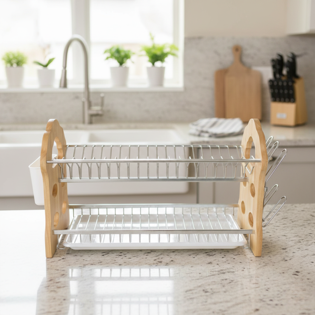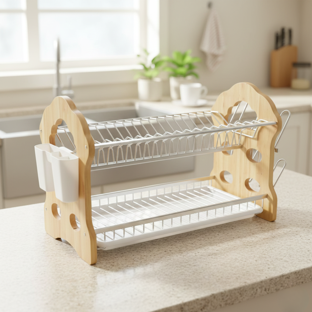 رف تجفيف صحون أنيق بتصميم عملي يجمع بين التنظيم والمتانة ، ليحافظ على ترتيب المطبخ ويمنحك مساحة أنظف وأكثر ترتيبًا.