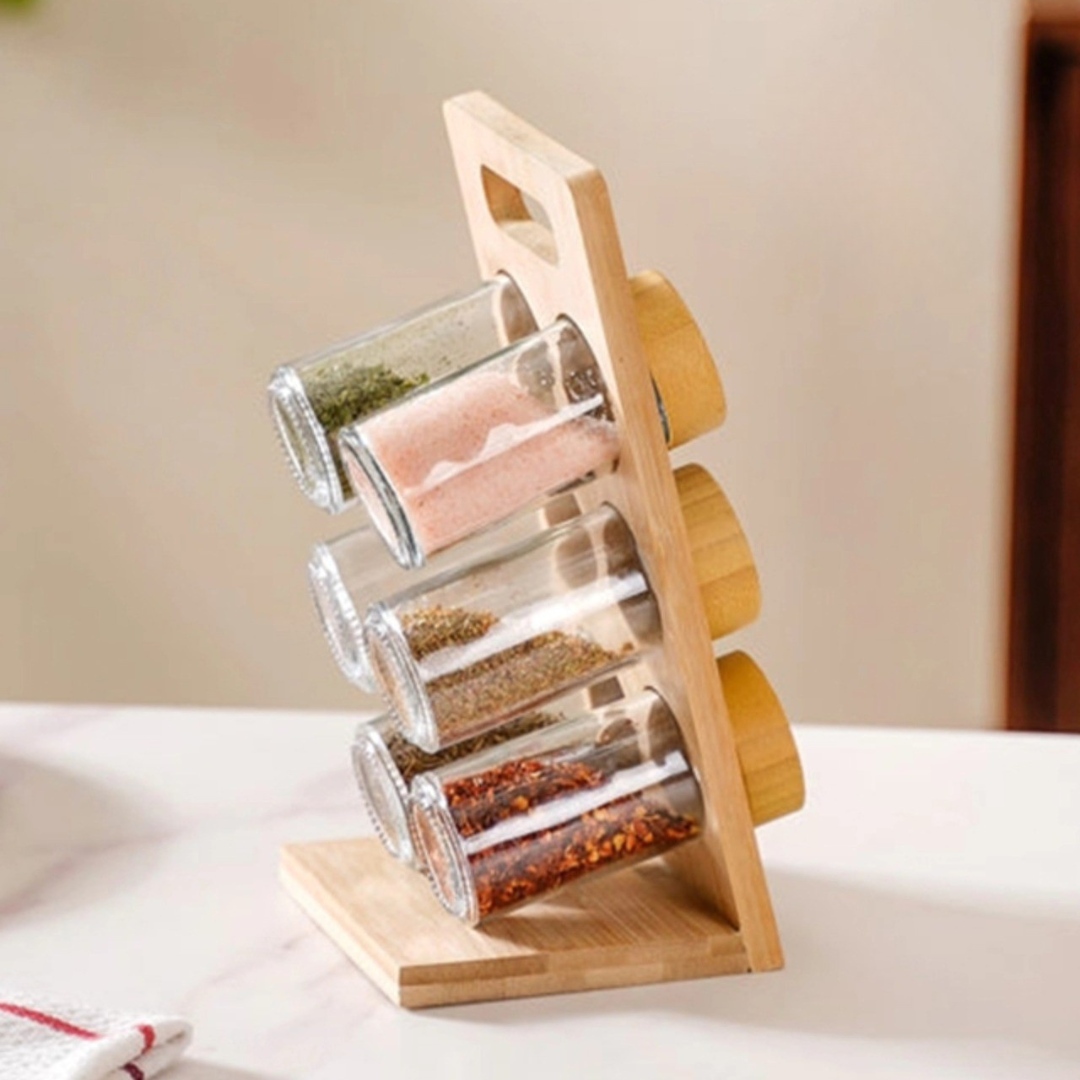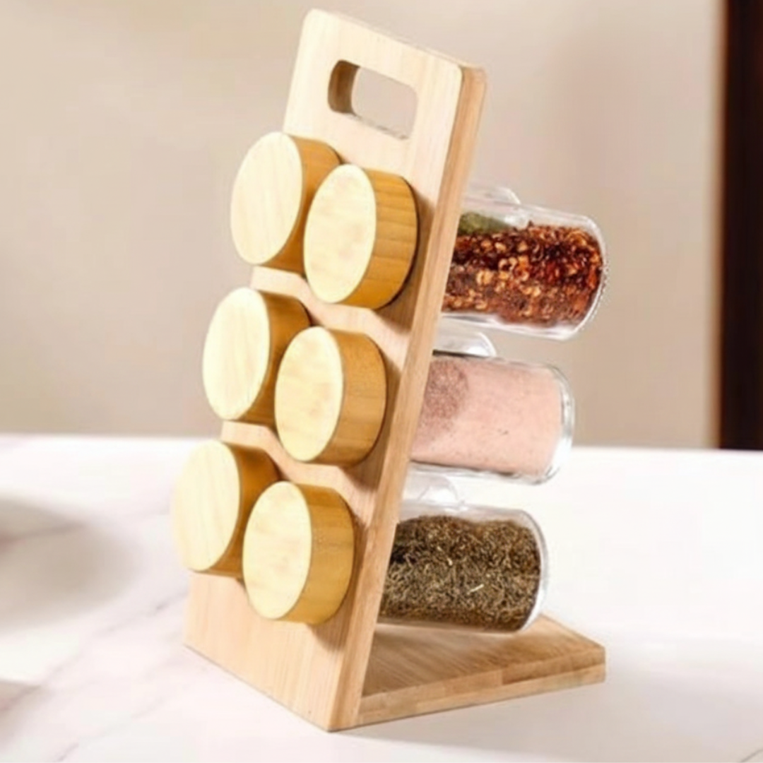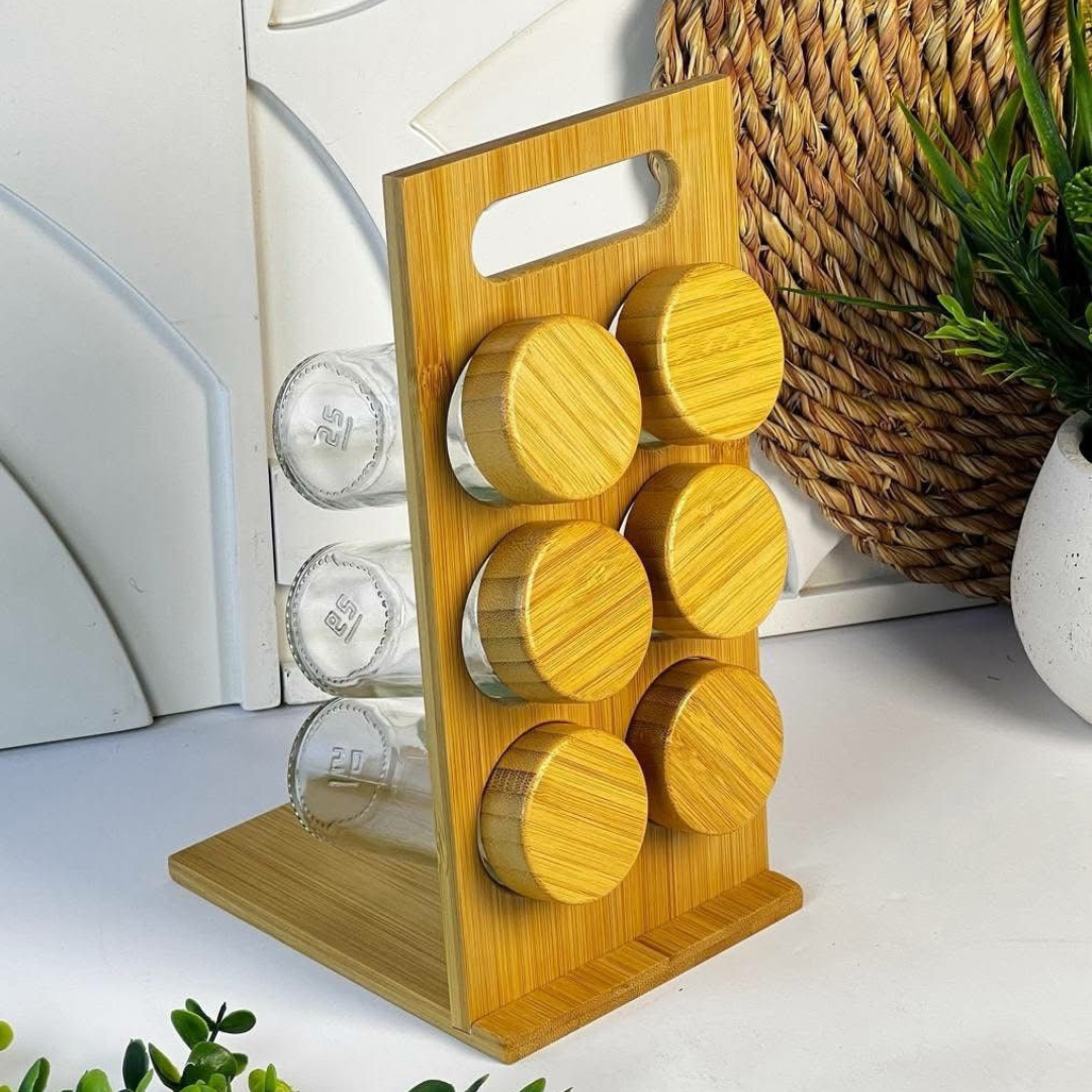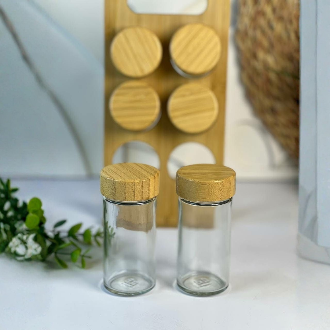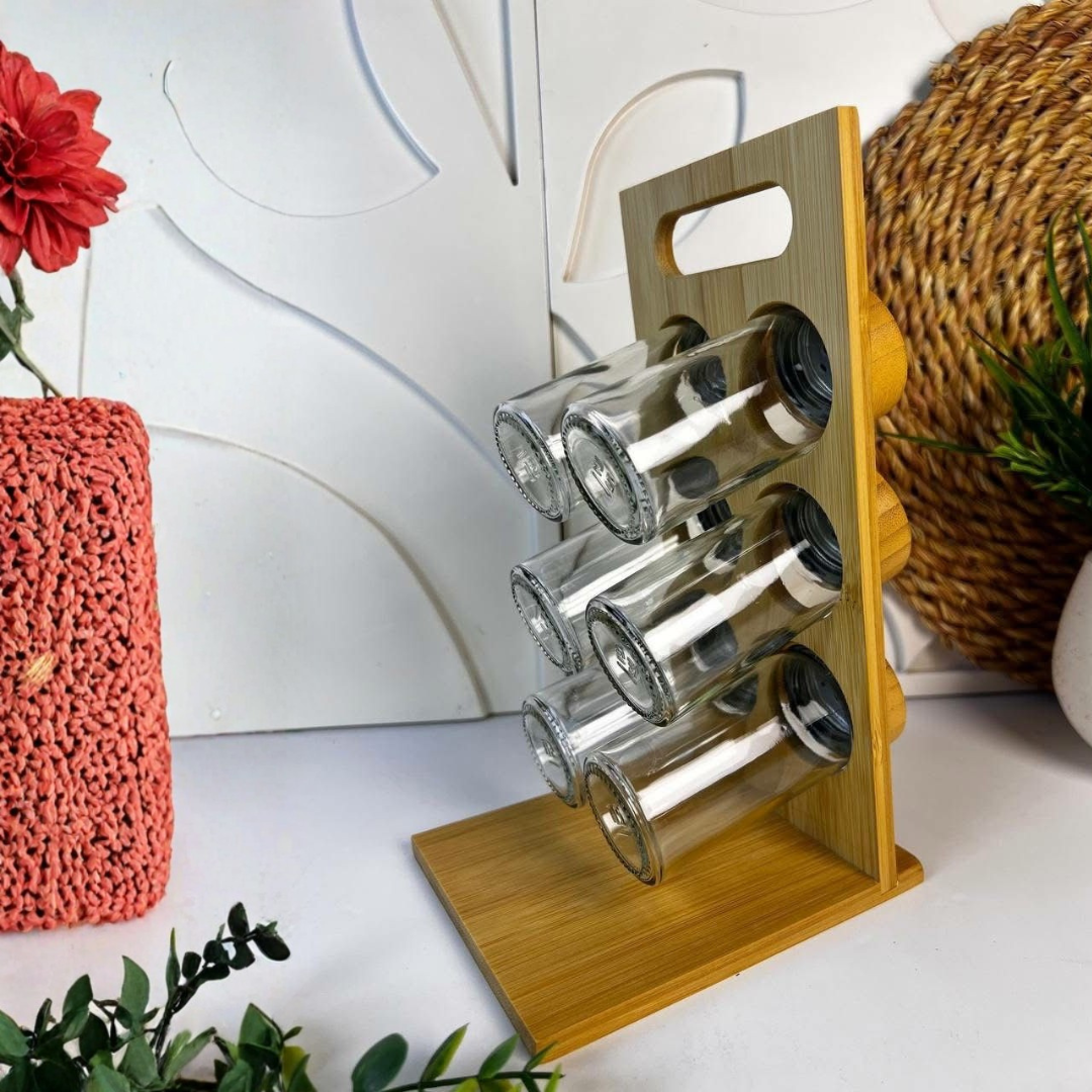 • يحتوي على 6 قارورات زجاجية شفافة تظهر ألوان التوابل وتضفي جمالاً على مطبخك.