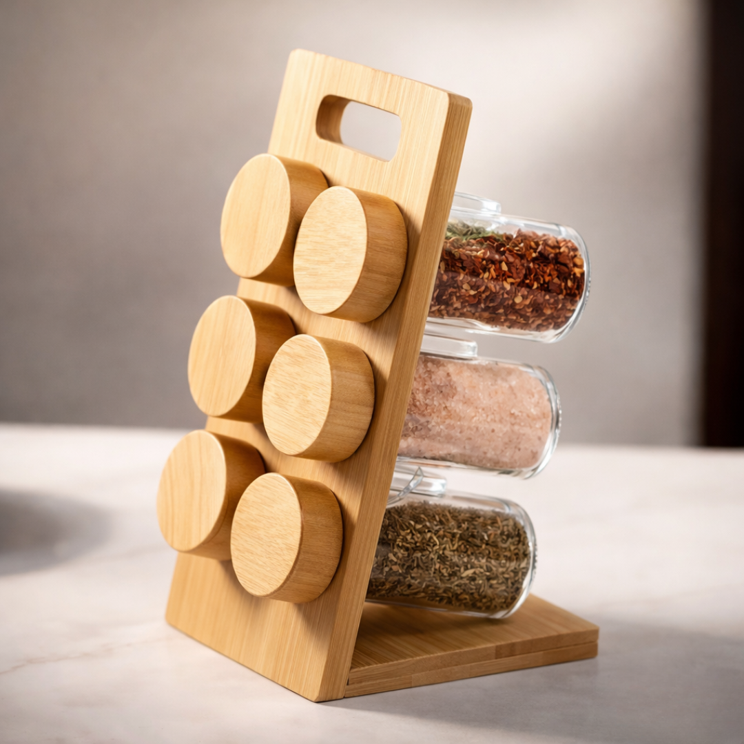 منظم توابل أنيق بتصميم مائل يسهل عليك رؤية والوصول إلى بهاراتك بسرعة أثناء الطبخ.
