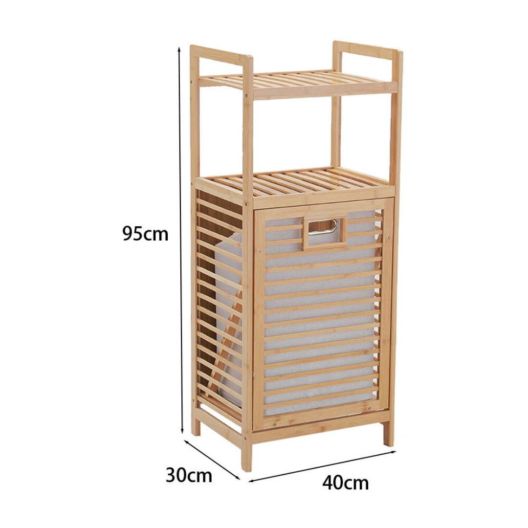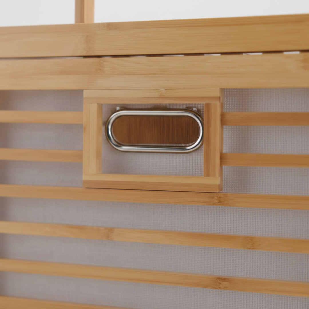 • التهوية: تصميم الشرائح الخشبية الجانبية والأمامية يسمح بمرور الهواء، مما يمنع تكون الروائح الكريهة داخل سلة الغسيل.